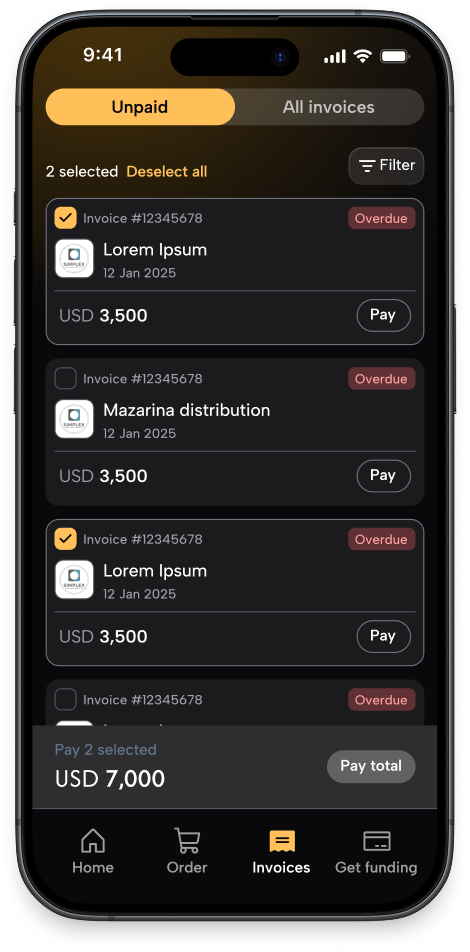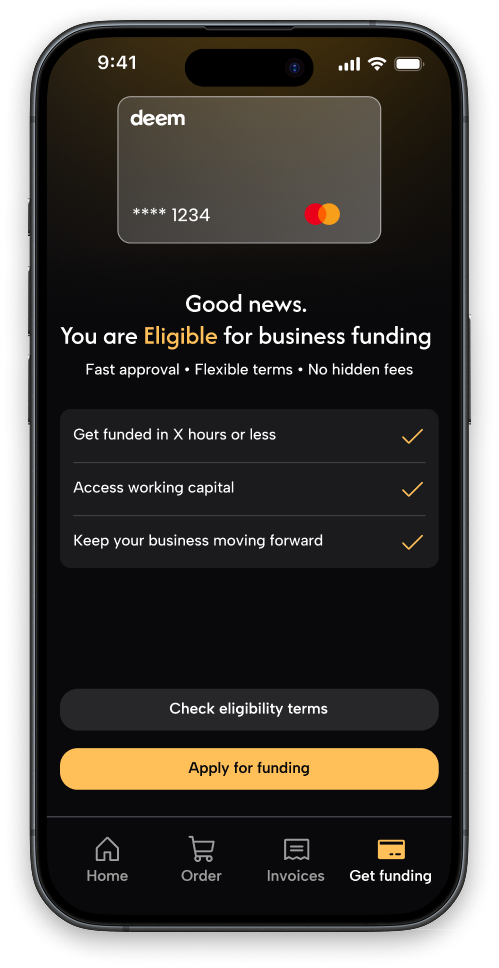 Instant financing for invoices with credit card issuing.
